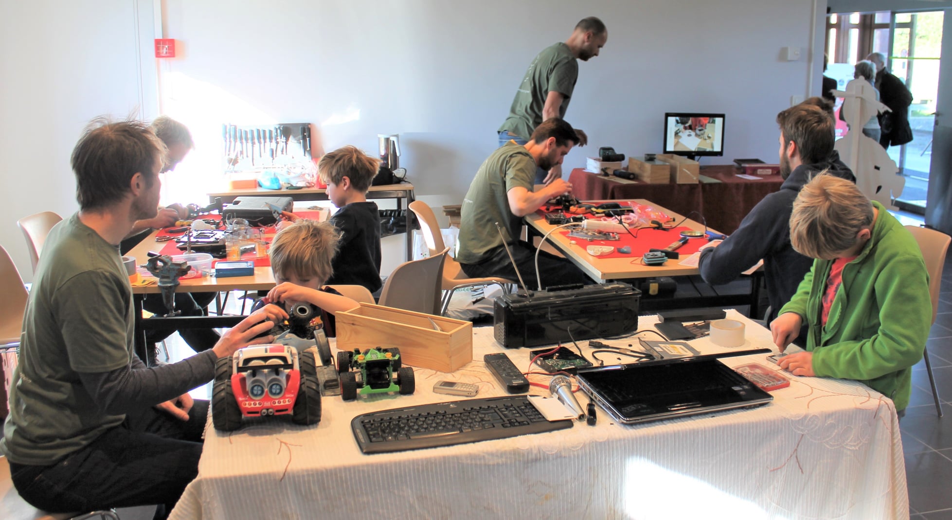 Heb je geen kapotte spullen? Geen probleem, ook dan ben je welkom! Er wordt genoeg materiaal voorzien.